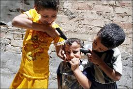 The video starts off at what looks like a regular day at kindergarten, where children are playing and being all gay (not that kind of gay, you turt!). There is a girl playing with cubes and building some towers, and on the other side, there is a boy playing innocently with a small airplane. Add them up and, voilà, shit hits the fan - that was something I kind of saw coming, but did not dare to foreshadow for the sake of my mental health (I don't like it when I find myself lost in conflict-induced/inspired thoughts). After the fall of the towers, the situation in the innocent classroom got quite agitated. Tanks, bazookas, grenades, and somewhere in between an analogy of the day Sadam's statue fell and the way the crowd danced around it signaling victory, are included in the video. There is even a part where some children recreate a situation where intruders go into someone's home, and soullessly "shoot" an innocent "man" in front of their family. My jaw dropped with astonishment.